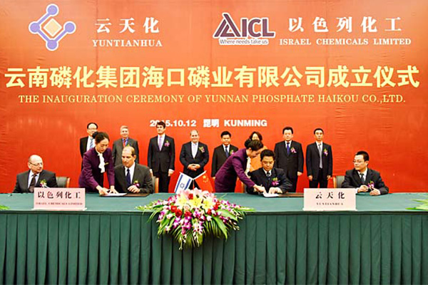 中以合資企業(yè)云南磷化集團(tuán)海口磷業(yè)有限公司(簡(jiǎn)稱YPH)于2015年10月成立,注冊(cè)資本23億元人民幣,由中以化工以色列化工集團(tuán)、云天化集團(tuán)合資組建。