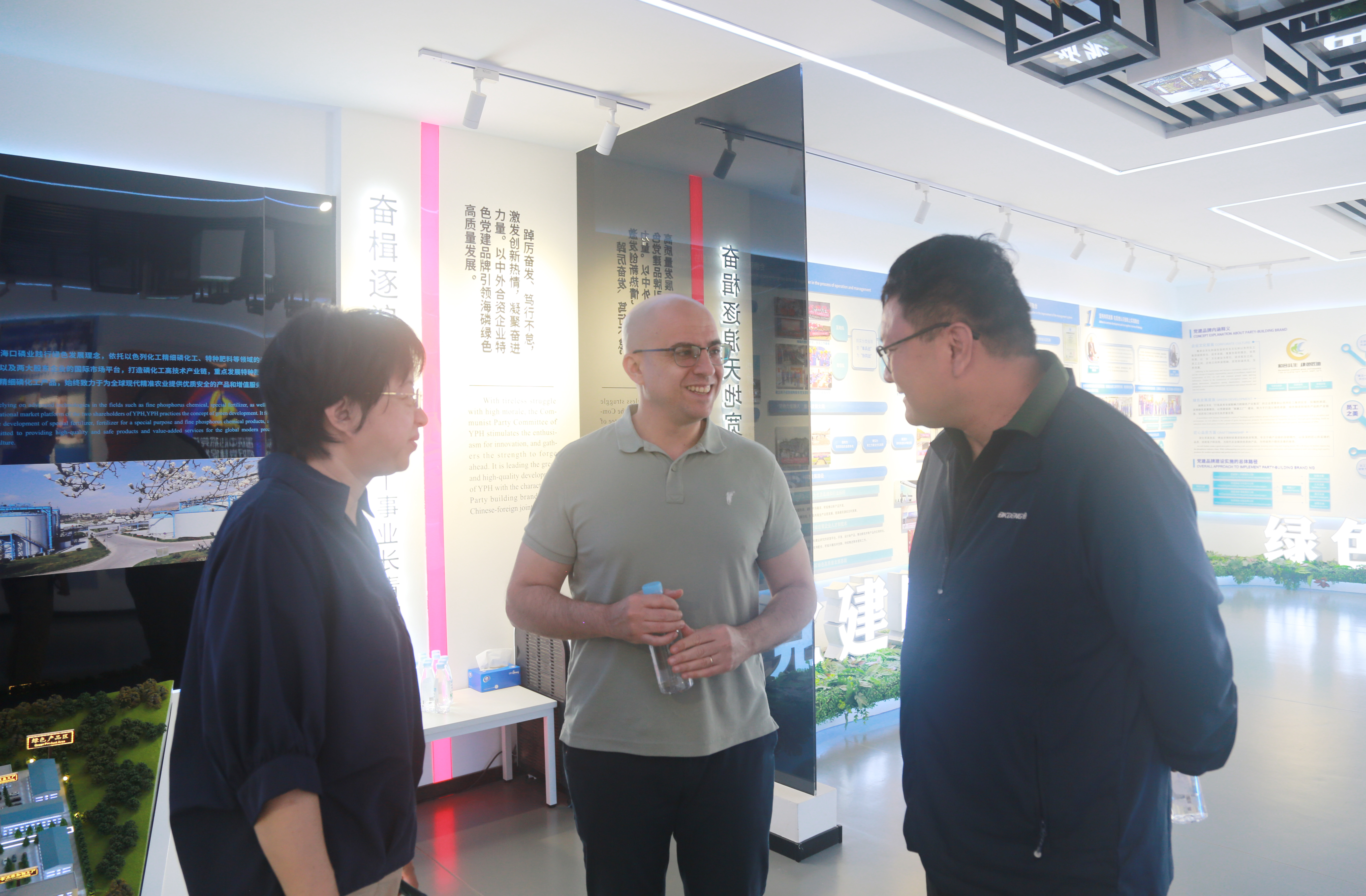 在“合文化”展廳,蔡彬亭詳細介紹公司“和合共生 綠色匠造”的中外合資黨建品牌建設成果,結合圖文展板、視頻和產品實物生動講解和展示了公司以黨建為引領,推動中外文化融合發展的創新實踐。強調公司在省市各級政府的關心支持下,通過改革謀發展、創新求突破,大力推進產業結構優化和產品轉型升級等舉措。